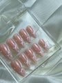 CHIC! Soft blush medium almond frenchies glammed out with pearls .